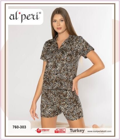 Alperi 760-303 (M-L-XL-XXL) Bayan Şortlu Takım 4'lü - Pijama Takımı