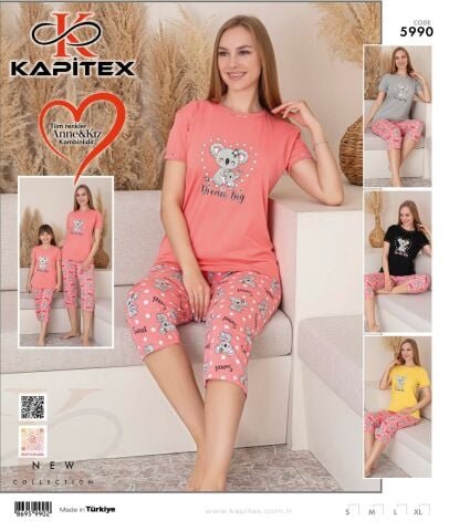 Kapitex 5990 Kısa Kol Kapri Bayan Pijama Takım 4’lü – Pijama Takımı Queenela farkı ve kalitesiyle hizmetinizdedir. Pijama takımları, farklı bedenlerde ve stillerde seçenekler sunarak her ihtiyaca göre uyum sağlar. Kadın, erkek ve çocuklar için özel olarak tasarlanmış pijama takımları, yumuşak kumaşlar, rahat kesimler ve şık detaylarla öne çıkar. Renkli ve desenli modellerin yanı sıra sade ve klasik seçenekler de bulunur. Pijama takımlarımız, uyurken rahat etmenizi sağlamak için ideal tercihlerdir.